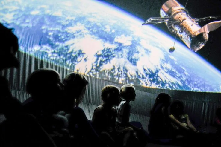 In de koepel zitten de leerlingen op kussentjes die tegen de binnenwand van het planetarium staan. De operator is een student Sterrenkunde die in het midden zit met een snelle laptop en een speciale beamer. Van daaruit stuurt hij de planetariumvoorstelling.