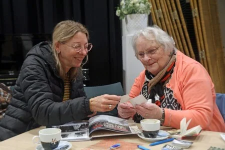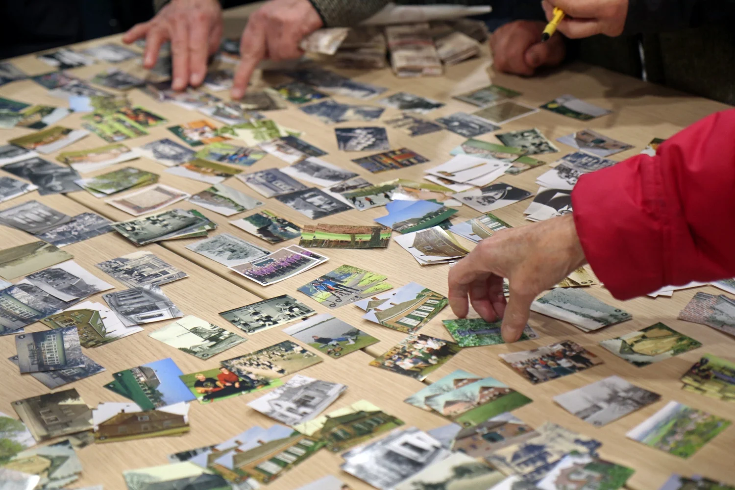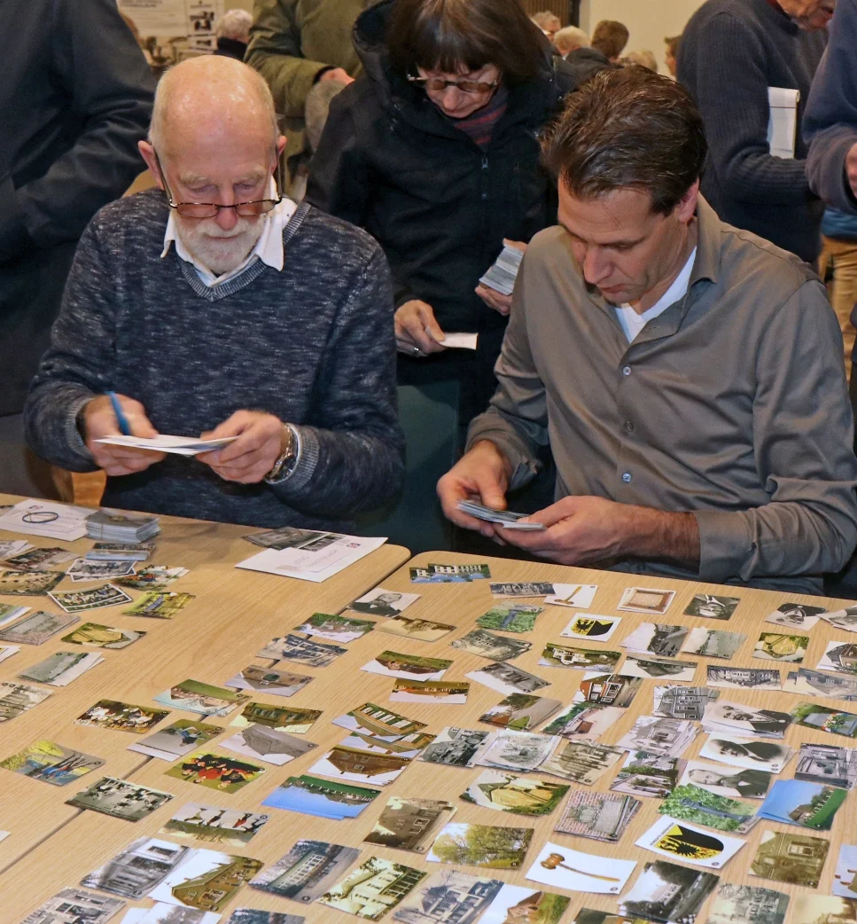 Woensdagmiddag was het een drukte van belang in het Kulturhus. Veel dorpsgenoten, maar ook mensen van buiten Diepenveen waren naar de ruilbeurs van de Historische Vereniging Dorp Diepenveen en Omgeving gekomen om hun plakplaatjes met historische afbeeldingen te kunnen ruilen. Mensen die nog plaatjes over hadden kwamen deze spontaan brengen waarmee ze anderen, die hun serie nog niet compleet hadden een groot plezier deden.